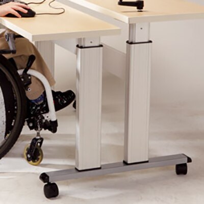 Fournit un large espace de travail. La découpe facilite l’accès aux personnes en fauteuil roulant. Le pupitre est réglable en hauteur pour convenir à plusieurs groupes d’âges et à des fauteuils roulants de différents styles. Le casier pour livres est placé sur le côté du pupitre afin de maximiser l’espace. Les enseignants et les thérapeutes ont déclaré qu'ils voulaient pouvoir ajuster la table à la volée (complètement encombrée) sans l'aide de personne. Notre bouton plongeant à ressort facilite le réglage - chaque patte peut être ajustée en moins de trois secondes sans outils. Le secret de notre réglage rapide et simple des boutons? Des colonnes en métal extrudé conçues sur mesure qui fournissent un mouvement de précision, éliminant l'alignement vacillant et inexact qui afflige les tables ajustées par bouton à bas prix. Simple, abordable et pratique pour tout le monde. .Dimensions: plateau 102 x 61 cm .Découpe 48 x 13 cm .Casier 36 x 18 x 36 cm .Hauteur 58-84 cm.
