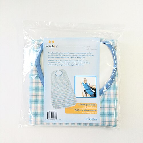 Cette bavette est assez grande pour couvrir une personne moyenne des épaules aux cuisses. En polyester-coton avec doublure imperméable qui protège contre les dégâts. L'ouverture pour le cou est ajustable avec des boutons pression. Le motif peut varier. .18'' / 46 cm de large .35'' / 90 cm de long Style vichy classique pour une protection quotidienne ! Le protecteur de vêtements Aurorra en vichy allie design intemporel et praticité. La fermeture à pression garantit une utilisation facile, tandis que le tissu doux et absorbant protège les vêtements. Parfait pour un usage médical et domestique.