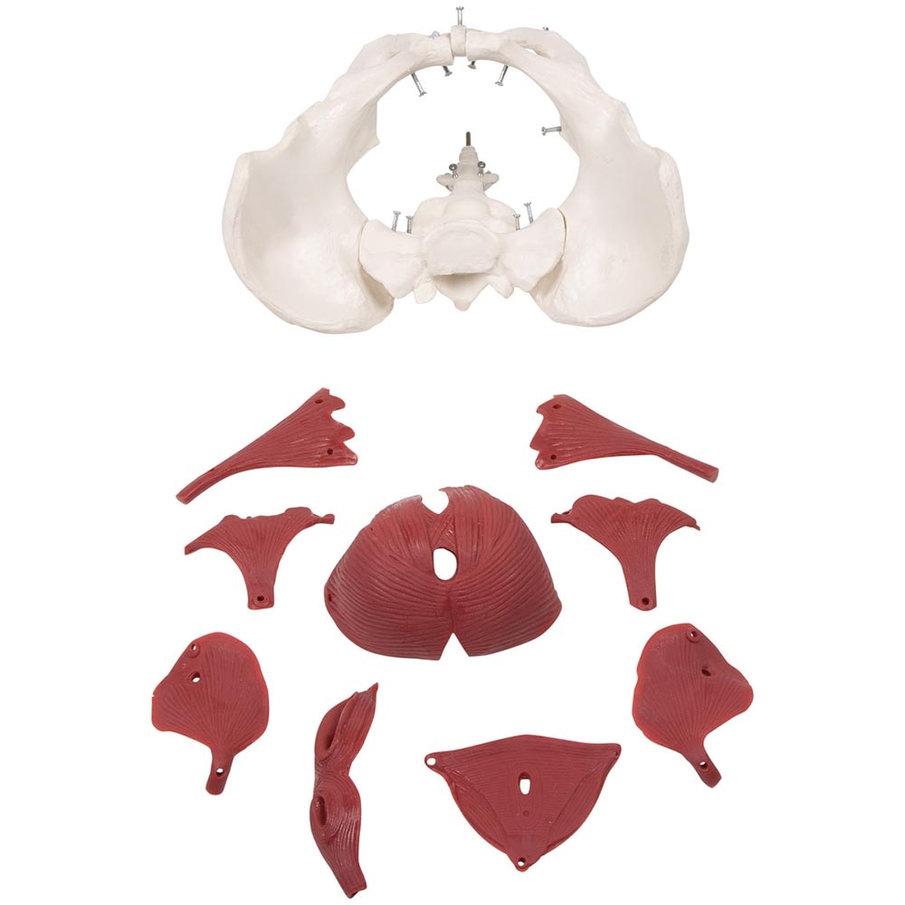 Avec les deux moitiés de bassin et le sacrum, le modèle se compose en tout de 12 pièces. Les muscles sont tenus par des pointes, si bien qu‘ils peuvent être facilement retirés pour montrer chaque couche. Ce modèle convient parfaitement aux cours de gymnastique pelvienne, à la préparation à l‘accouchement, pour la formation des sages-femmes ou tout simplement pour l‘étude de la musculature du plancher pelvien. .Taille : 27 x 18 x 17 cm .Poids : 960 g
