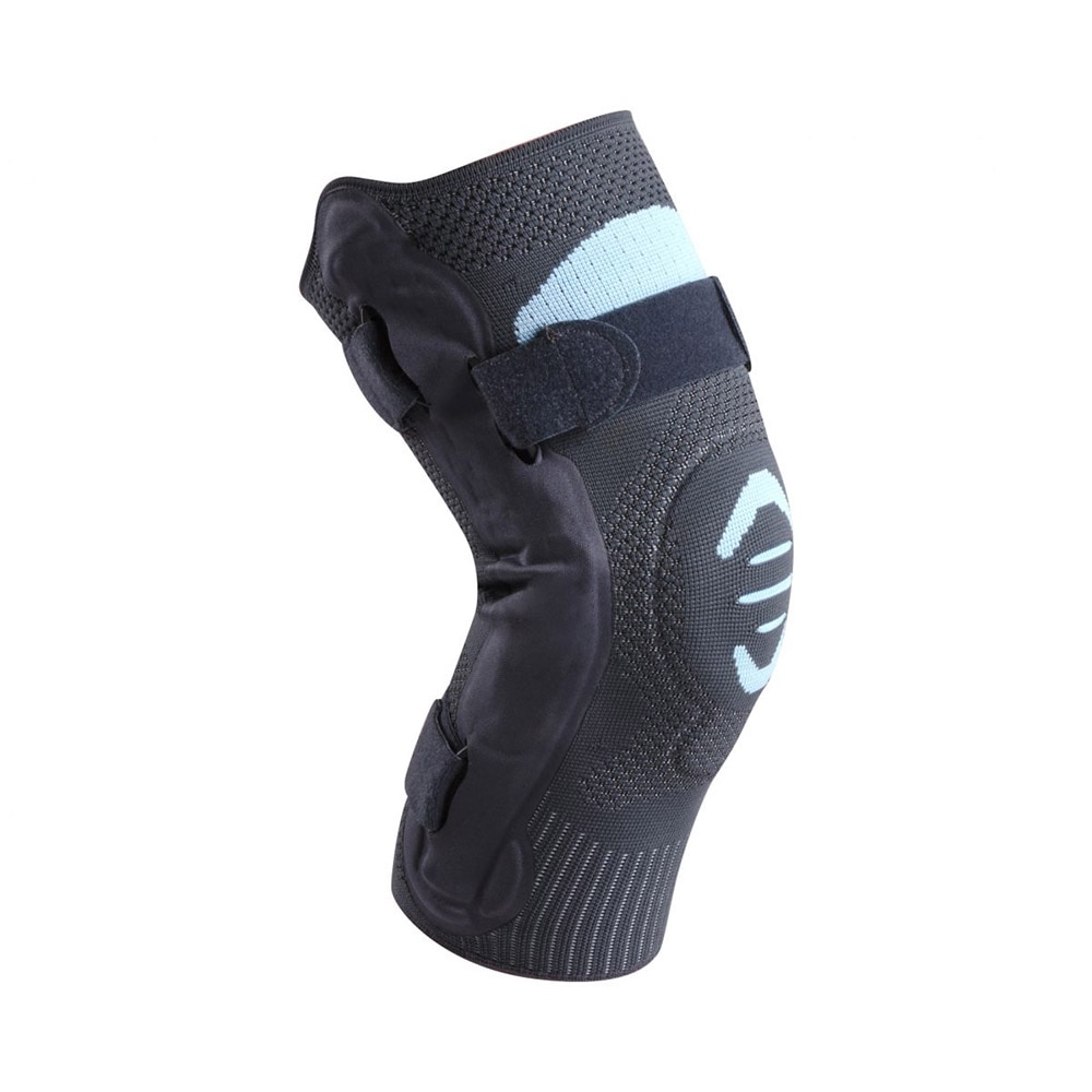 Caractértistiques : .Renforts latéraux articulés pour assurer la stabilité du genou. .Sangles positionnées en quinconce pour assurer le maintien de l’orthèse sur la jambe. .Sangles semi-circulaires évitant un éventuel effet garrot .Articulation bi-axiale amovible. .Tricotage anatomique assurant une compression homogène. .Fils siliconés sur le haut de la genouillère, optimisant la tenue de l’orthèse sur la jambe. .Insert rotulien en silicone pour maintenir la rotule. .Tricot extensible sur la cuisse Indications : .Traitement fonctionnel des entorses bénignes. .Reprise d’activité sportive après entorse (bénigne, moyenne ou grave).
