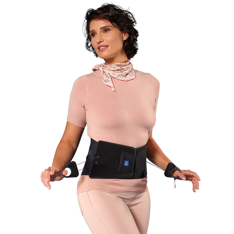 Ceinture lombaire LombaStab 2 Ceinture lombaire à serrage facile. Indiquée pour : - Lombalgies communes non spécifiques (aiguë, subaiguë, chronique) - Canal lombaire étroit - Patient cible : Station debout prolongée 1 - Adaptable à la morphologie : 4 baleines dorsales conformables et plaques dorsales indépendantes 2 - Facile à mettre en place : passe-mains symétriques pour faciliter le centrage de la ceinture 3 - Serrage facile et précis : système de serrage par câble et poignées de serrage faciles à appréhender 4 - Confortable et respirante : tissu LombaStab breveté et doublure Coolmax 5- Facilité d’entretien Hauteur: 21 cm Mesurer le tour de taille au niveau du nombril: PP2490-01 Taille 1 60 - 80 cm PP2490-02 Taille 2 75 - 95 cm PP2490-03 Taille 3 90 - 110 cm PP2490-04 Taille 4 105 - 125 cm PP2490-05 Taille 5 120 - 140 cm